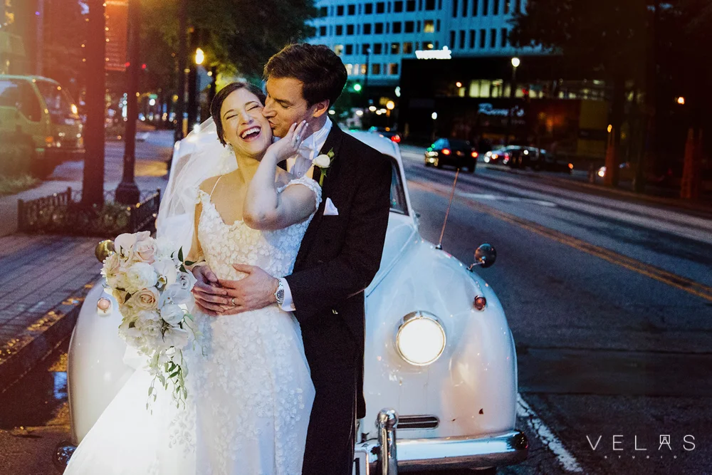 Clementina and Ty’s wedding was heavily infused with Venezuelan flavor. From the tequeños to the arepas to the hora loca, this couple perfectly blended the bride’s Venezuelan traditions into their Atlanta wedding for an unforgettable event full of love and laughter. After a beautiful church ceremony, the couple arrived to The Wimbish House in style to kick off the reception with friends and family.