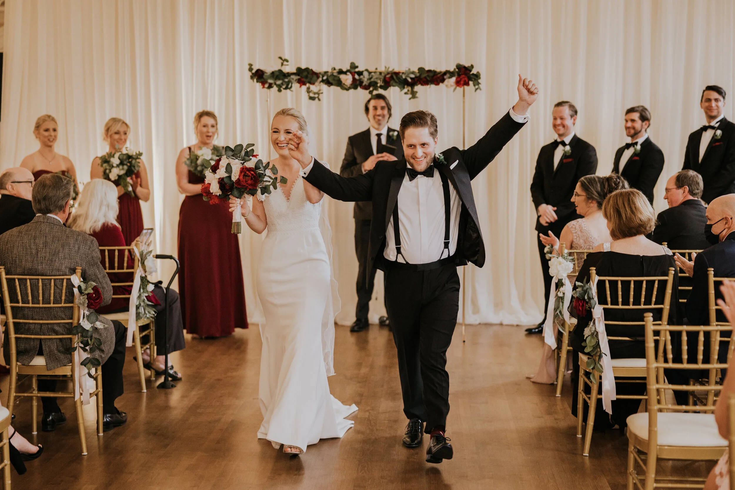 After the ceremony, the couple enjoyed a private stroll before joining their guests in the ballroom for the reception. An evening of dancing to Emerald Empire Band’s lively music ended with a glow stick send-off.