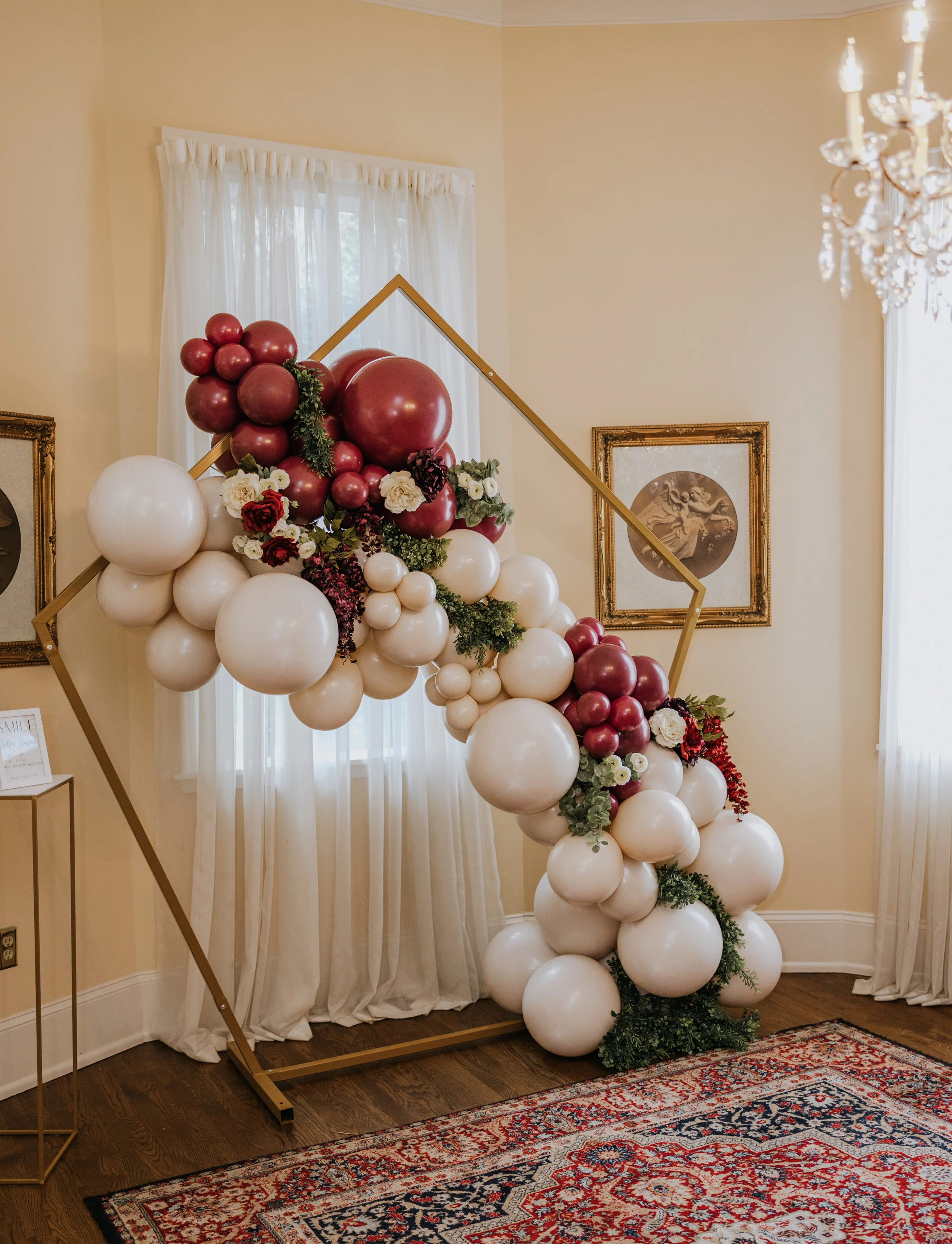 Happily ever after never looked so glamorous! Faux fur shrugs, a whimsical balloon arch, elegant drapery, and pops of jewel tones made this Atlanta wedding an absolute showstopper. The bride’s “first look” reveal was such a sweet moment, and Lunalee Photography captured it so beautifully.